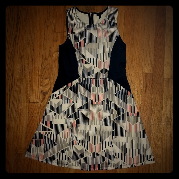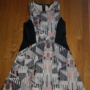 Fun abstract dress with pockets, cut with heels , sneakers or flats