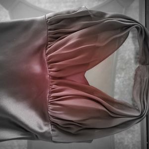 Halter style bridesmaid dress, chocolate satin color with sheer at the top, ruffle back,