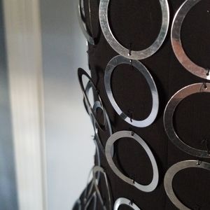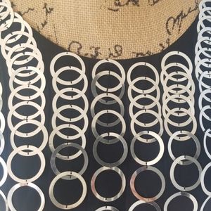 Beautiful tulle and ring dress, worn once at a fashion show..a few of the rings are bent but can easily be bented back into shape... one ring is broken but is still attached to the dress. See above pictures.