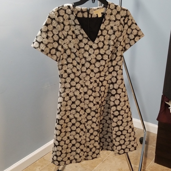 Michael Kors Stunning black dress with white leafy pattern. Has pleats on the skirt
