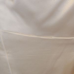 One shoulder formal dress. Minimal wear and tear shown in photos. Dress worn twice. Off white/ivory color. Brand is Betsy & Adam