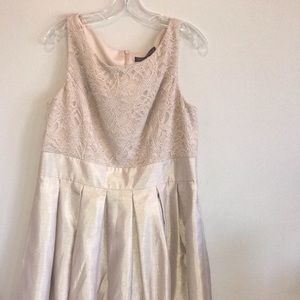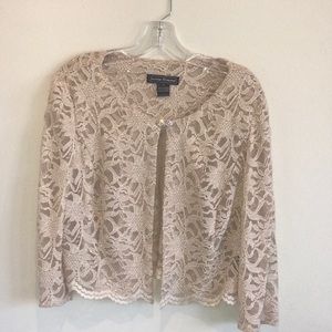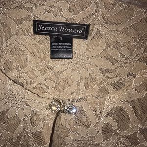 Jessica Howard champagne A line dress with lining and matching lace jacket. Size 16. Dress worn twice.