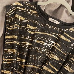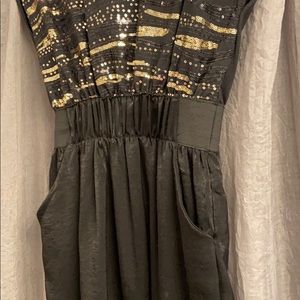 Black and gold sequin dress Silky material Functioning pockets Banded stretchy waist 11.5” 32.5” length