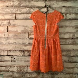 This is a Kensie dress. The top layer is orange lace and the inner lining is white.