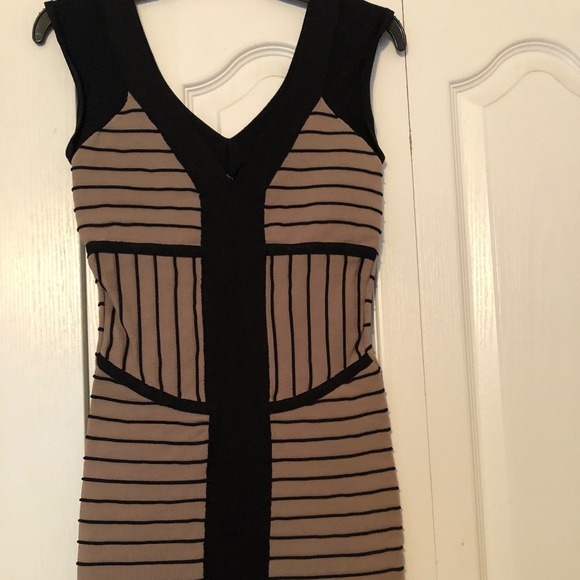 Black and khaki low v-neck dress