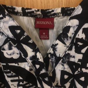 Merona size M, black and white floral dress with spaghetti straps that are adjustable.