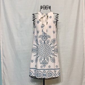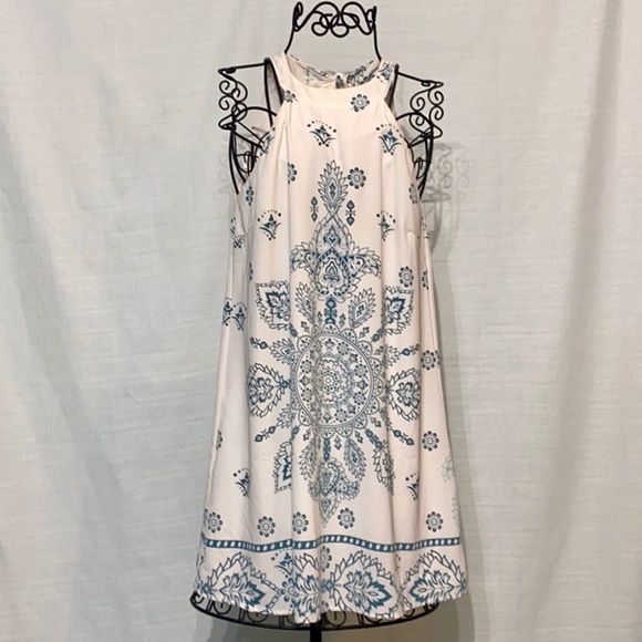 White dress with halter neckline, a beautiful blue-ish/grey mandala pattern worn only once. Perfect condition . Size small