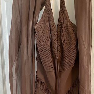 Worn once, Newman Marcus. Backless and lightweight, scarf..