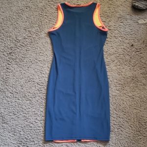 Mini dress. Polyester and spandex. Hem is coming loose as shown in the 3rd picture. Worn once
