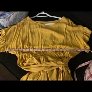 Yellow wrap dress. Short lands right above the knee. Really comfy and cool material, light for summertime weather. Worn once for 30 min.