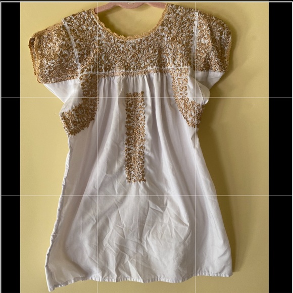 This cute dress is made in Oaxaca Mexico, pay attention to the hand sewn in gold. It can be worn in a special summer events.