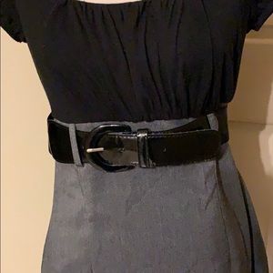 Black and gray dress with patent leather belt. Gently used in great condition.