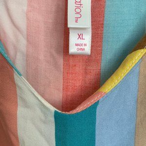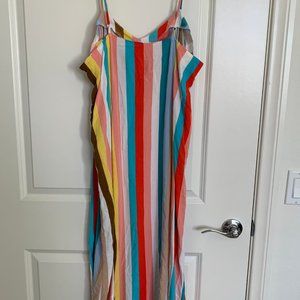Multi colored, stripped dress, with slits on bottom (modest slits). Comes with little rope tie. Size XL..Could fit a L.