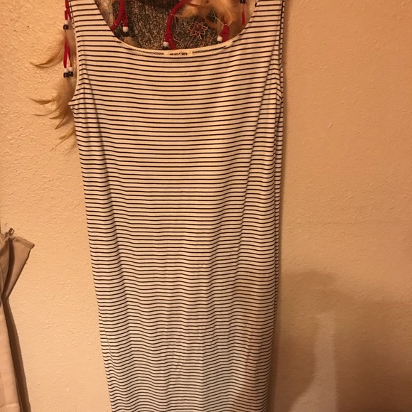 Striped black and white womens dress, size medium. Nerve worn, but washed. Flattering fit, knee length and very soft material