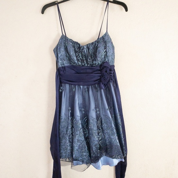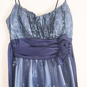Beautiful purple/lilac color dress with beautiful detailing and sparkles. Has purple bow with floral accents at the waist. Never worn, but tags were removed.
