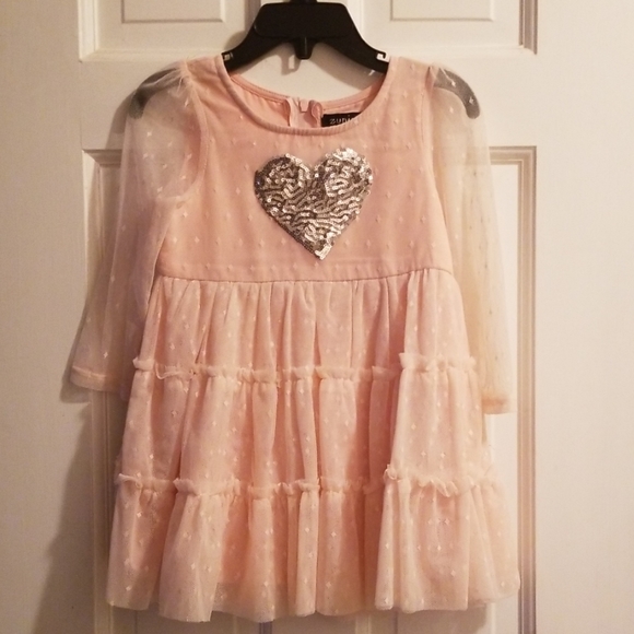 Toddler girls dress new sheer sleeves sequin heart