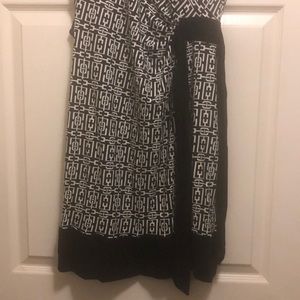 EUC - Black & white pattern dress with attached side belt. Knit material with a sleek fit.... fits like a large. Offers welcomed. ๐