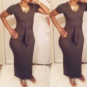 Army green maxi dress with a 20 inches slit at one side and a tie in the front,size medium,Across bust measure 32",waist 28",Hip measures 34",New never worn