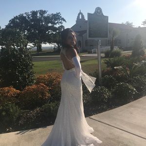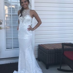 White sequined dress, beading on top and back worn twice
