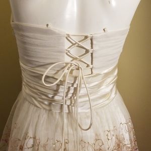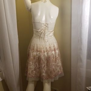 Beautiful champagne and rose gold cocktail dress. The halter back can be worn different ways. EXCELLENT CONDITION.