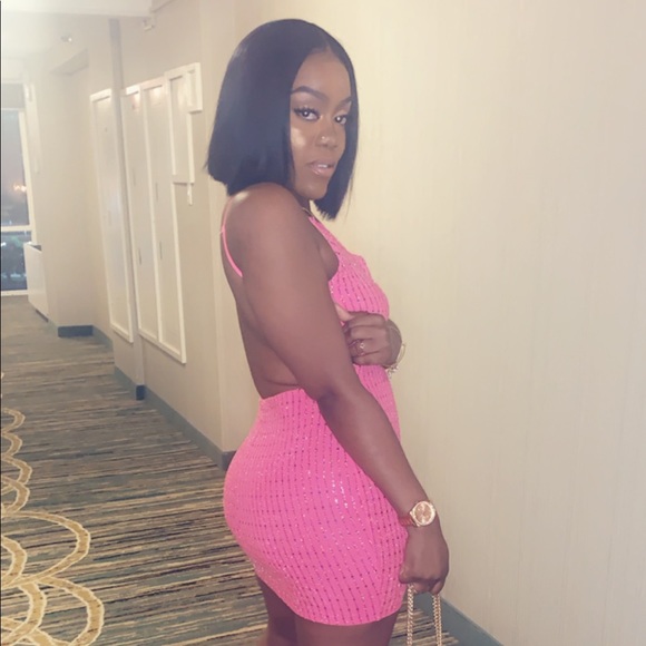Hot pink mini sparkling stone detail dress size medium from (Touch Dolls boutique m)