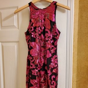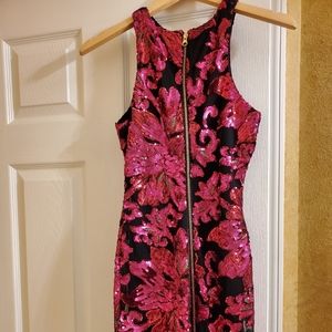 Black and pink laced Knee length XS Cache dress, fairly used.