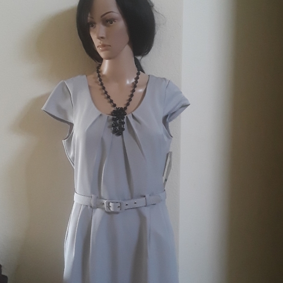 Short sleeves dress with belt and 2 front pockets, and pleated neck. Great for work and play. Just add a sweater or jacket...and head out! (L-36" /16 ptp)