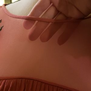 ๐ญGauze antique rose/rust dress. Embellished with crochet flowers on the shoulder/collar bone area. Sheer material that lays across the chest. Perfect for Spring and Summer, and even Fall! Size XLG
