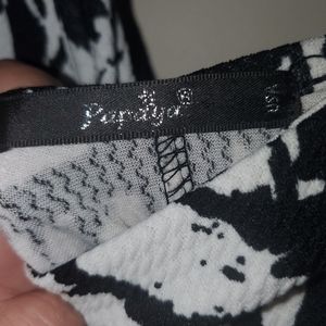 It's a black and white dress . It has a little puff that makes the dress looks really adorable. I have only worn it few times.