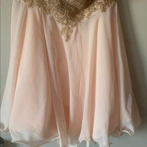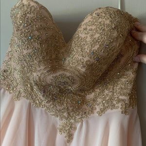 Strapless dress worn once. Cut tag off but size 14. Zip back. Color is between a light pink and peach