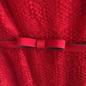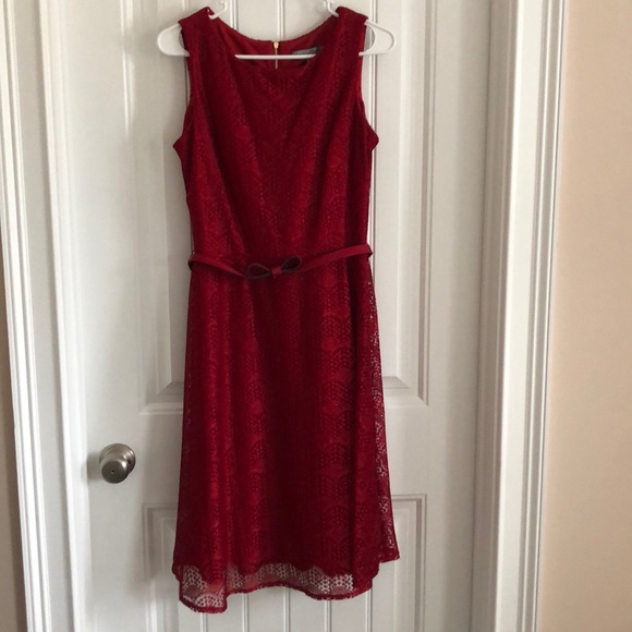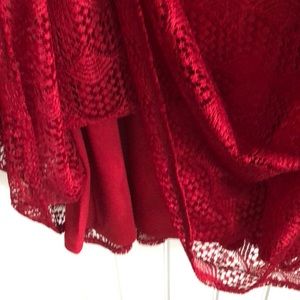Beautiful deep red dress with a lace over top with a red bow belt. I only wore this dress once and now it doesn’t fit me anymore!