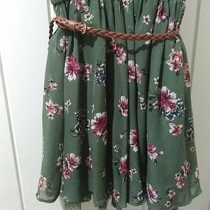 County chic dress with belt. Lined with slip. Like new/used once. Colors: Olive green with maroon and dark blue flowers.