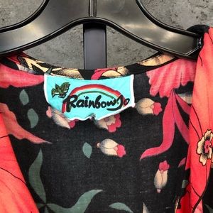 New never been worn! Rainbow, tropical floral, multi colored wi front tie and ruffle
