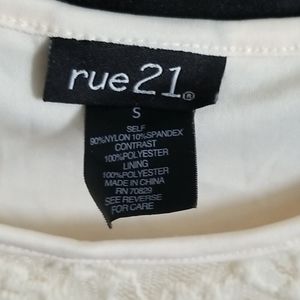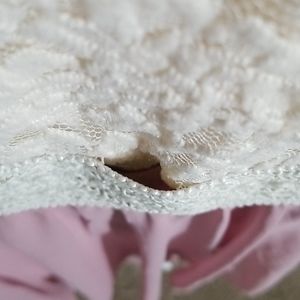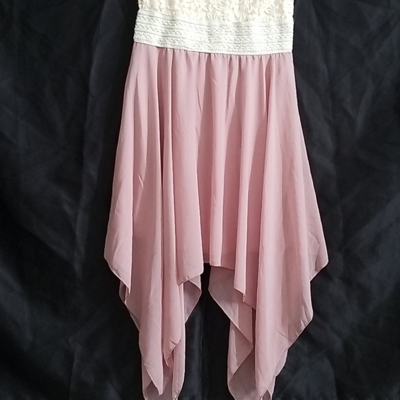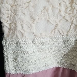 flowy bottom w 2 layers. lacy top w a embroidered mid section. sleeveless w one small hole that is unnoticeable. used but in good shape.