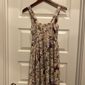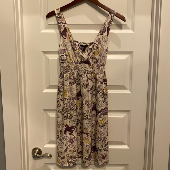 Cute sundress. Very flowy and cool for hot summer days! Pattern is purple and yellow butterflies.
