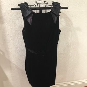 Silky bows on the shoulders of this velvet above the knee cocktail dress.