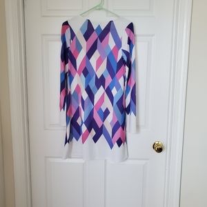Long sleeve t-shirt dress with shades of purple, blue and pink