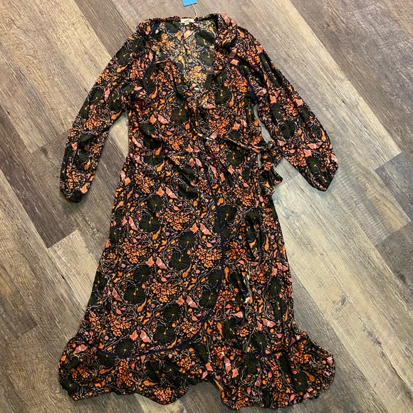 100% viscose brand new dress, never worn. Long or 3/4 sleeves. Ties in front. Smoke & pet free home