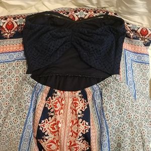 Maxi dress Red white and blue bottom Dark blue lacy top Strapless Gently used