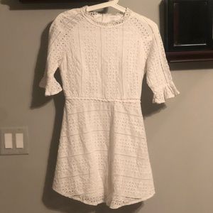 Very cute white dress perfect for summer. No flaws. Light breathable material, not see through