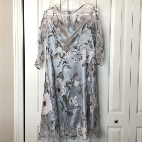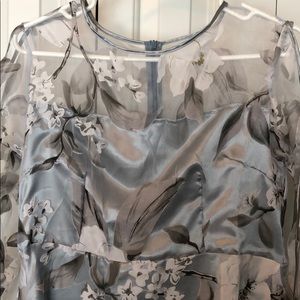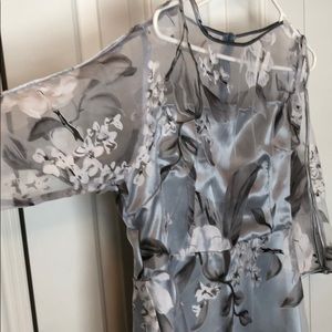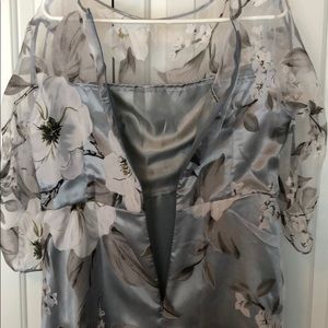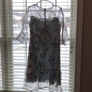 Lined see through knee length party dress. Very, very light fabric with peekaboo sleeves and floral pattern. No tags/ never worn.