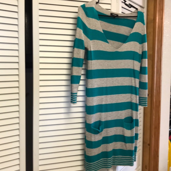 Teal and grey sweater dress