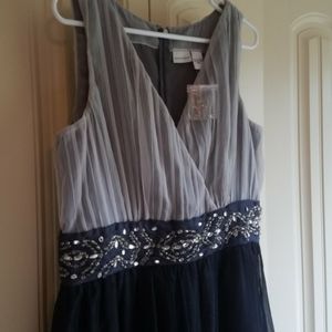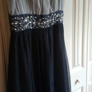 Dress never worn. Beaded waist. Zipper in back. She'll is gray. Top is white skirt is black. Very flattering .