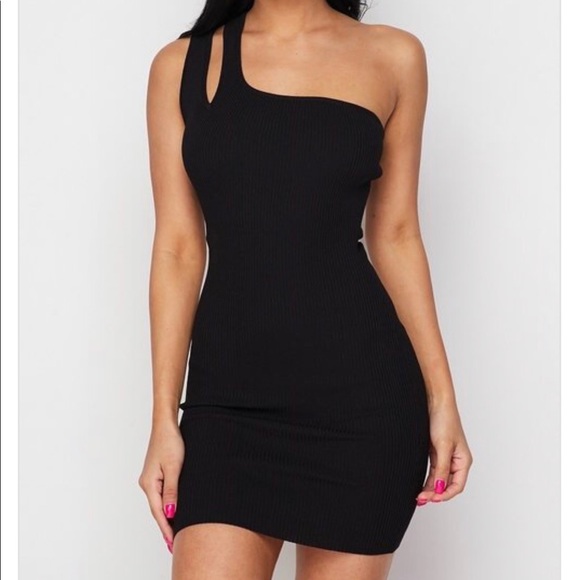 Black mini dress has stretch model is wearing a small