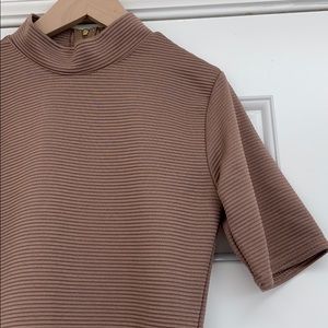 This dress is amazing and I’m so sad that it doesn’t fit me. Everything from the neckline to the gold zipper detailing to the cute hemline to the longer sleeves are so on point. You won’t regret this purchase! This dress is in excellent condition.