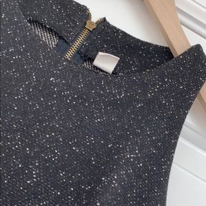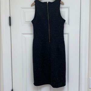 This dress is cute and is a nice thick material. I love the contrast in the fabric and the gold zipper detail in the back. This dress is in excellent condition.