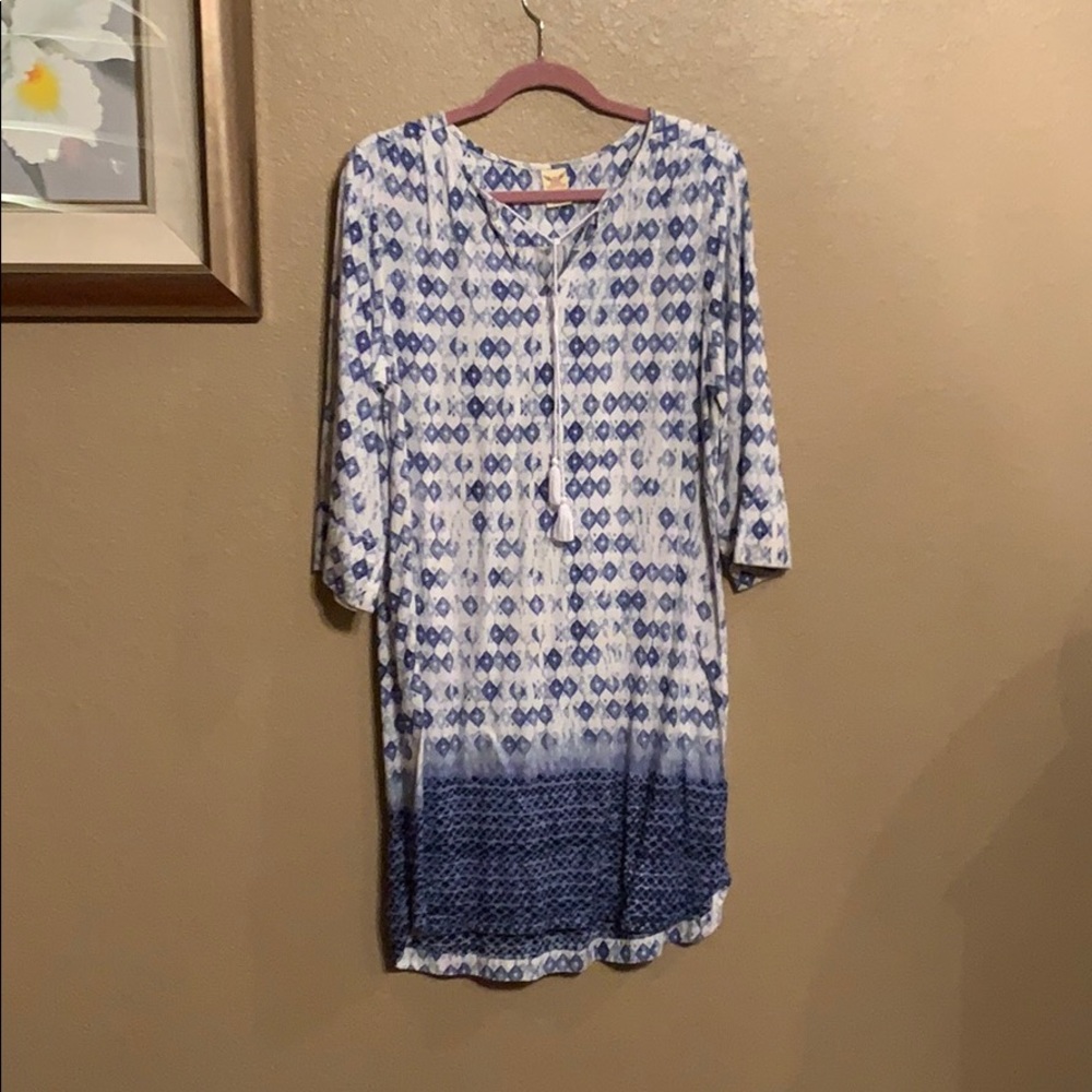 Shift dress with tie neck. Great for summer with sneaks/ sandals.