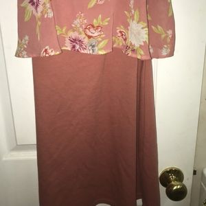 Peach color dress with floral top halve