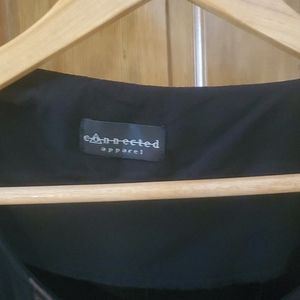 Black, knee-length, sleevless with beige slip underneath