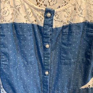 Tank top dress. Botton down with pearl buttons. Lace back